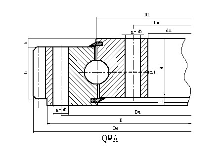 单列四点接触球回转支承由两个座环组成,结构紧凑,重量轻,钢球在四点与圆形滚道接触,可同时承受轴向力、径向力和倾斜力矩。